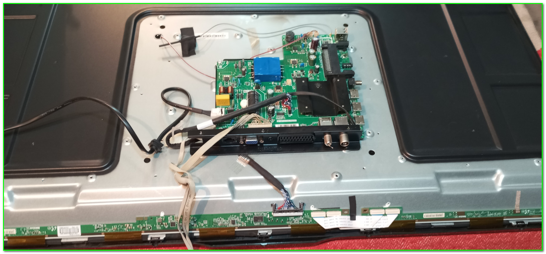 На момент поступления телека в ремонт выяснилось что дефект вполне типовой- подсветки нету. Ну то есть включается, просматривается логотип на темном фоне, после загрузки андроида и звук появляется. Короче говоря все вполне банально: проверяем исправность LED- драйвера, если там порядок то придется матрас разбирать. А что там они сами пытались заменить- вскрытие покажет. Итак, поехали..
