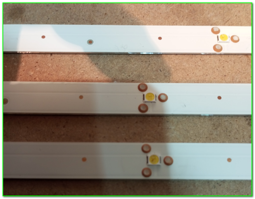 Ну вот, теперь мы маркировку планок и применяемые светодиоды уже знаем и у нас два варианта- или планки искать или светики перепаивать. Для меня второй вариант более приемлемый, и именно так я и поступил.