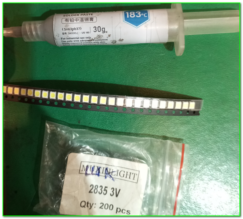Конечно-же еще паста паяльная потребовалась, ну и сами светики
