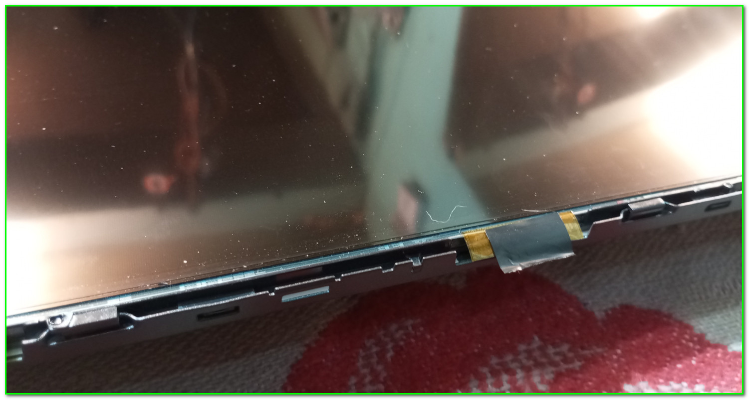 Далее выяснилось что есть и еще один неприятный сюрприз- матрица была приклеена. В верху была полоска скотча и пришлось ее срезать