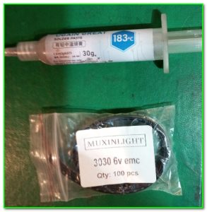 Для пайки, кроме самих светодиодов, нам еще потребуется паяльная паста.