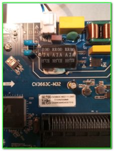 В телеке применено шасси CV3663C-M32. Для уменьшения подсветки нужно выпаивать резисторы а токовом датчике, они указаны на картинке ниже: