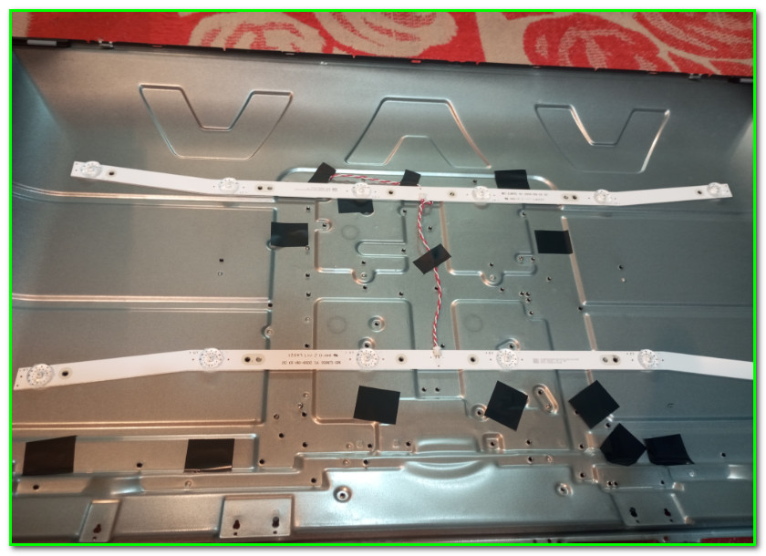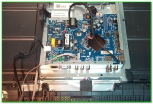 Думаю Вы уже догадались что изначально я его уже включал и по факту был темный экран, звук присутствовал и картинка немного просматривалась. Так что дальнейшая процедура диагностики стандартная- проверяем работоспособность драйвера светодиодной подсветки. Это достаточно просто- нужно всего-лишь замерить напряжение на разъеме подключения планок.