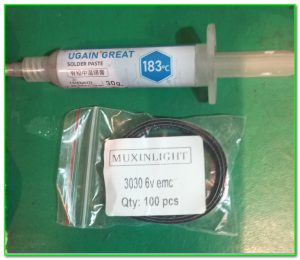 Сами светодиоды оказались 6-ти Вольтовые, типоразмера 3030, контакты EMC.