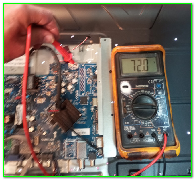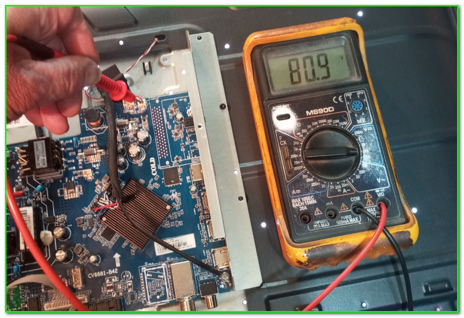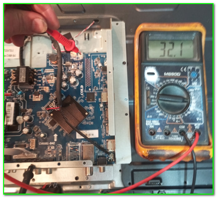 Сфоткать не успел… Сами понимаете: это довольно сложно- и телевизор включать, и щуп мультиметра рукой держать, да еще и фотографировать.