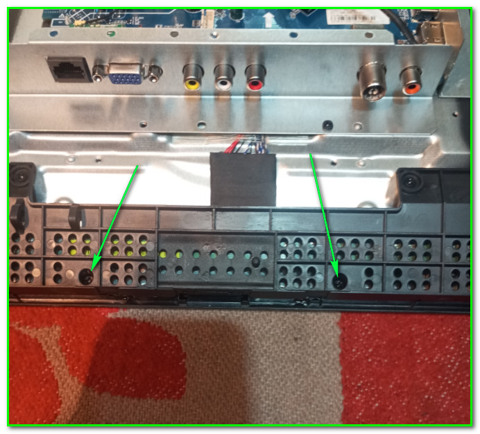 Небольшая тонкость: в нижней части телевизора отверстий под винты довольно много, и поэтому относящиеся непосредственно к передней рамке, я пометил маркером.
