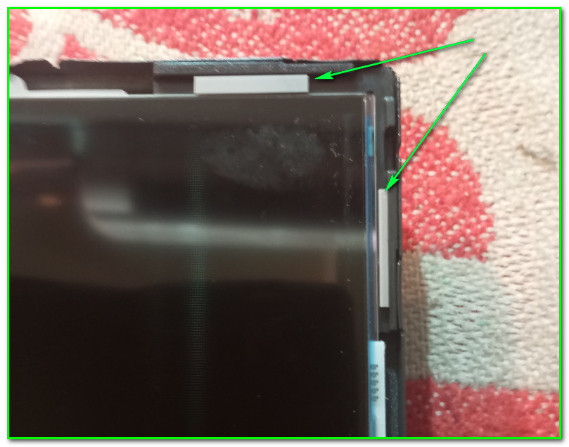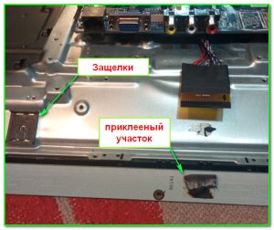 Третье: практически во всех телевизорах имеются резиновые уплотнители. Это нормальное явление- так производители устраняют люфт матрицы. Так вот именно в данной модели в правом верхнем углу они были приклеены довольно небрежно- они прилипли к матрице, что сильно затрудняло ее извлечение. Конечно-же лучше перестраховаться и отклеить их чтобы стекло не заломить