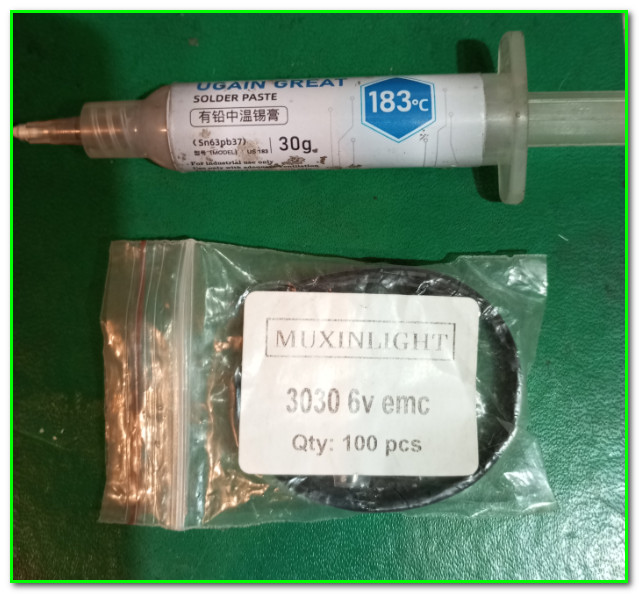 Итак- что мы имеем: зная маркировку можно сбегать в ближайший магазин или обратиться на маркет-плейс. Но для меня лично более удобен другой вариант- просто перепаять сами светики, тем более что все необходимое для этого у меня в наличии уже имеется: и паяльная паста и сами светодиоды