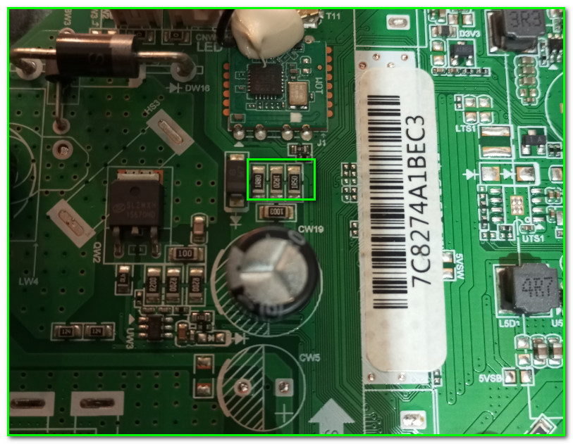 Ну и напоследок- как уменьшить ток в телеке Blackton BT32S08B. Здесь ничего необычного нету- все стандартно- увеличиваем номинал токового датчика. В телевизоре применяется модуль T.RT2843P639. Токовый датчик здесь- это три параллельно-включенных низкоомных SMD резистора