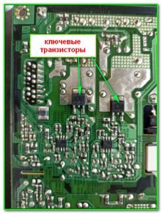 В данном случае имеется тонкость: модуль применяется в телевизорах с диагональю 39 и более дюймов и подсветка здесь разделена на две части (верх-низ) имеет два независимых драйвера с ключевыми транзисторами на каждом: