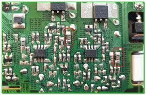 Изначально это резисторы номиналом 4R7, а местоположение указано на картинке ниже: