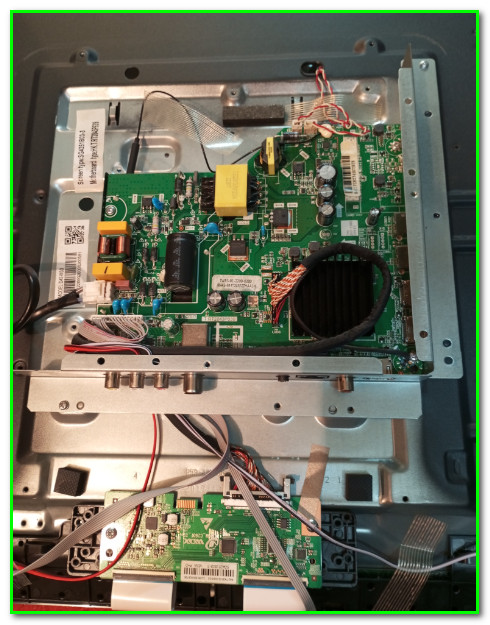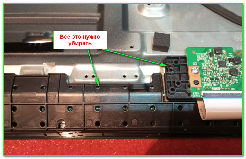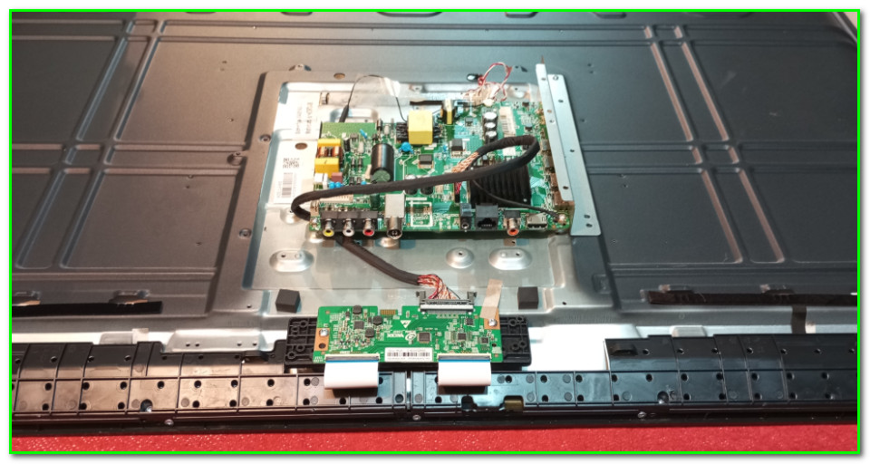 Разбирается телек немного не удобно- платы спрятаны под пластиковыми крышками, да еще и крепление Тикона мешается
