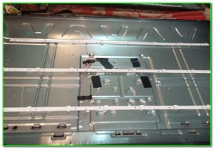 Внутри телевизора три планки на алюминиевой основе, по 8 светиков на каждой
