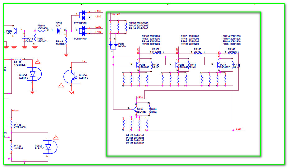Согласно схемы подсветка может быть разбита на 4 независимых канала с ключевыми транзистрами и токовыми датчиками на каждом из них.