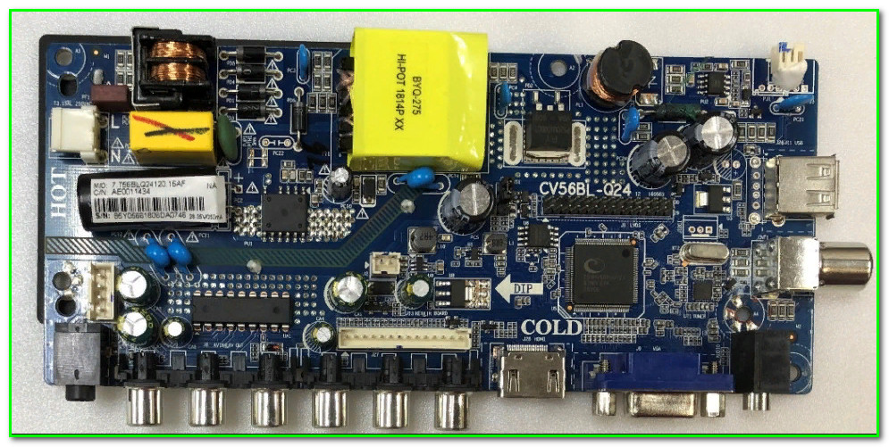 Моноплата CV56BL-Q24 применяется в телевизорах бюджетного класса. Внешний вид шасси показан на рисунке ниже: