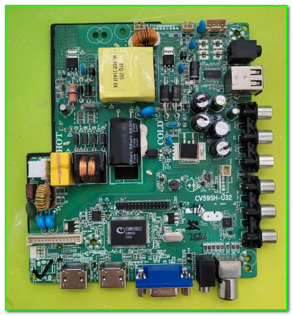Моношасси CV59SH-U32 применяется в различных телевизорах бюджетного класса. Внешний вид шасси CV59SH-U32 показан на картинке ниже: