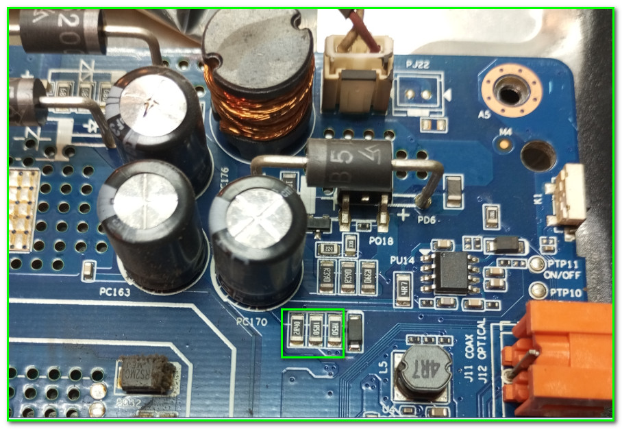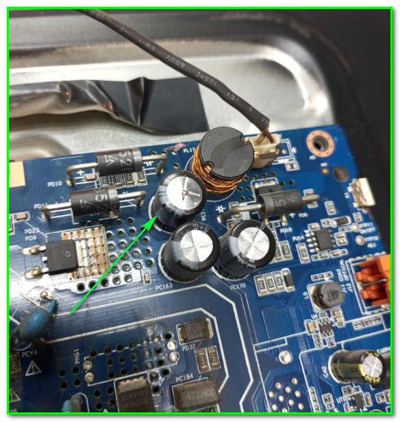 Удалил резистор номиналом 1R5. Информации по светодиодам нет, так как неисправность была решена заменой «беременного» конденсатора 330,0 мкФ * 35V