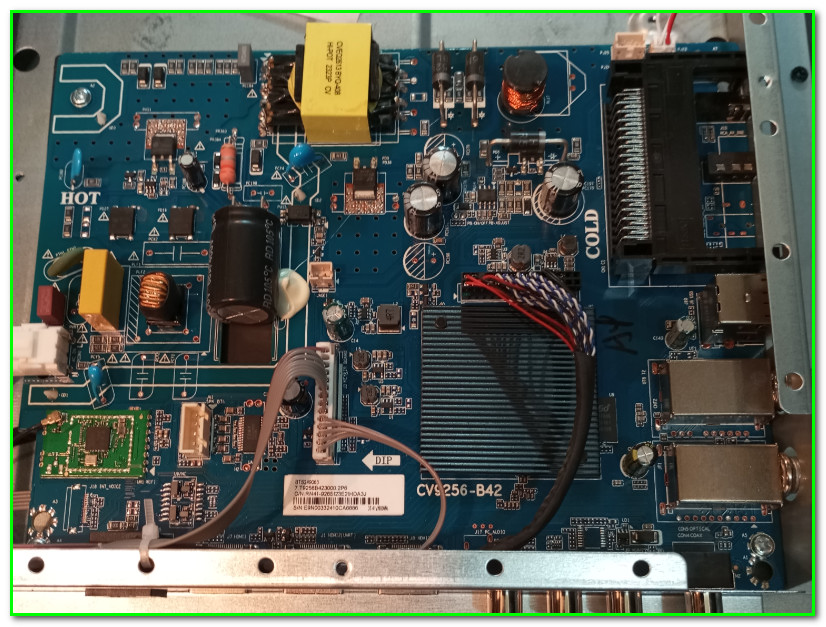 Модуль встретился в телевизоре Hartens M32-M30. Был удален резистор номиналом 1R3.