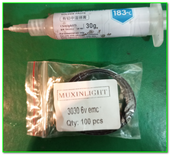 Почему перепаивать? Я по этому поводу уже высказывался в отдельной статье, так что заострять внимание не буду. Ах да, чуть не забыл… Светодиоды здесь 6-ти Вольтовые, типоразмера 3030, с контактами EMC, вот так они выглядят: