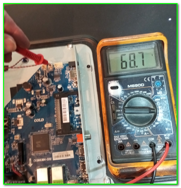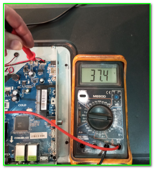 После того как светодиоды были перепаяны, работоспособность проверена, мы проверяем напряжение подсветки.