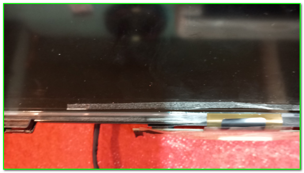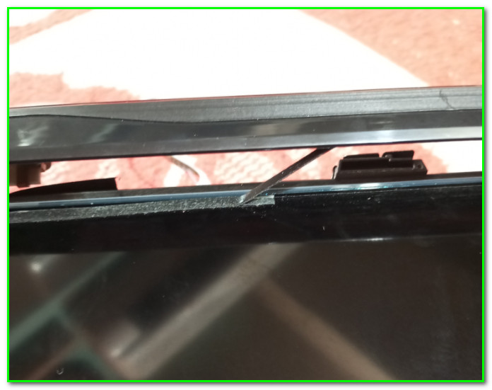 Приключения на этом еще не заканчиваются… Выяснилось что еще и сама матрица приклеена в верхней части. Пришлось еще дополнительно срезать все это дело при помощи тонкого пластика