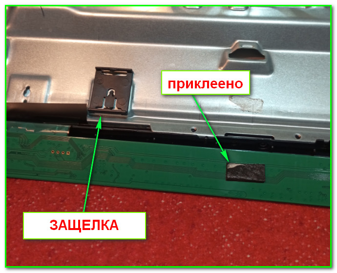 Дальше наблюдаем прикол от производителя- платы имеют и защелки и приклеенные места.