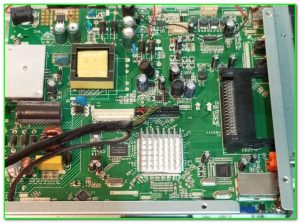 Дефект выражался как «тяжелый запуск»- то есть выходил из дежурного режима после 5-10 нажатий на кнопку POWER, затем внутри был слышен характерный писк, изображение дрожало, яркость подсветки прыгала. Короче говоря и так без всякой диагностики было понятно что аппарат изрядно «устал».