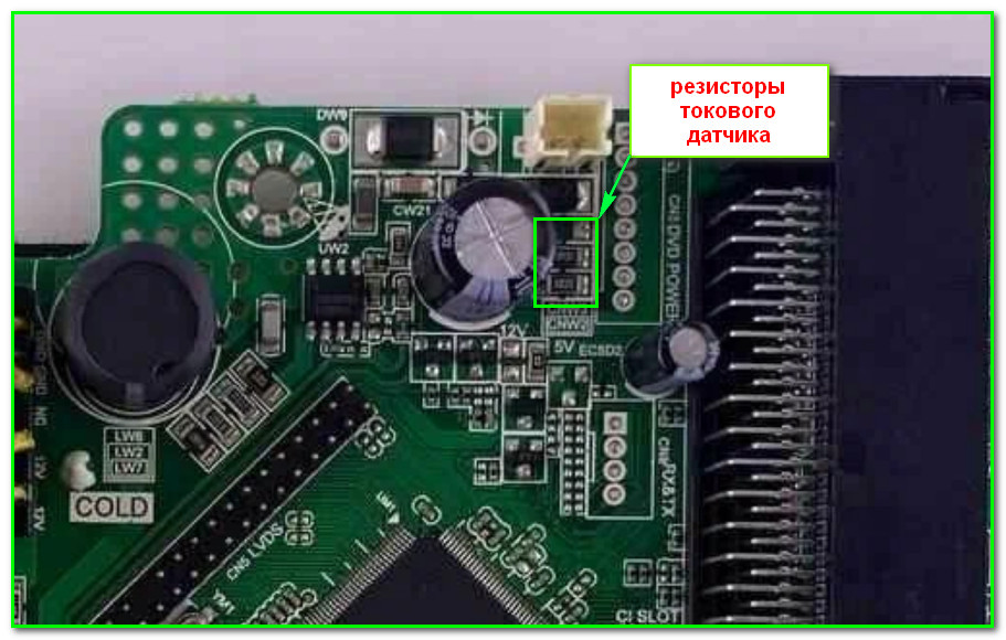 Визуальное расположение резисторов токового датчика показано на рисунке ниже: