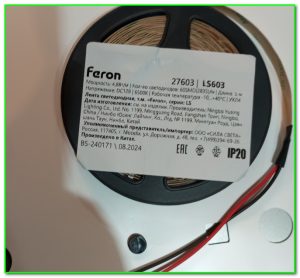 Приобретал я их на одном из известных маркет-плейсов. Где именно говорить не буду чтобы не сочли за рекламу 🙂 Параметры у них такие: светодиоды 2835, плотность 60шт/метр, напряжение питания +12V, цвет холодный белый, в катушке 5 метров.