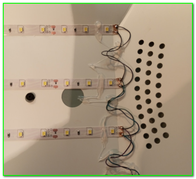 Подаем на них питание, накидываем светорассеиватели (пока без матрицы) и проверяем что у нас получилось.