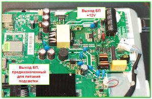 Как уже упоминалось чуть ранее (в другой статье, правда)- практически во всех современных телевизорах источник питания имеет всего-ли два выхода: это основной +12V, и еще один для питания драйвера подсветки. Этот телевизор так-же не исключение: