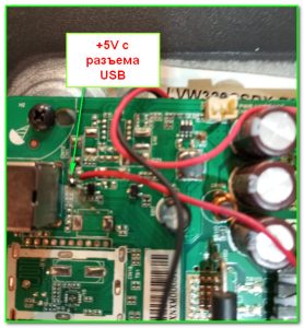 А для того чтобы эта релюха включалась и выключалась вместе с телевизором, на ее обмотку мы будем подавать напряжение +5V с USB разъема телевизора- она как раз появляется там только в рабочем режиме