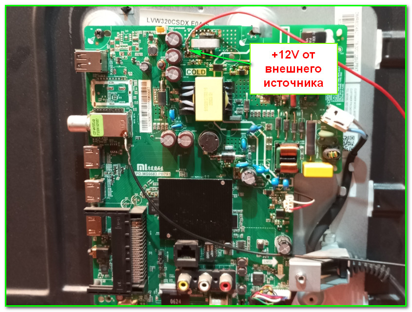 1. Место под внешний источник питания имеется и от него телевизор запускается это мы уже проверили.