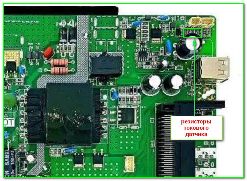 Уменьшение тока подсветки производится стандартным способом- то есть увеличиваем номинал токового датчика. На самом модуле это набор низкоомных параллельно-включенных SMD резисторов. Местоположение указано на картинке ниже: