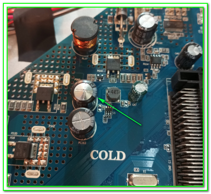 На плате сразу-же обнаружился «беременный» кондерчик номиналом 330,0 мкФ * 35V