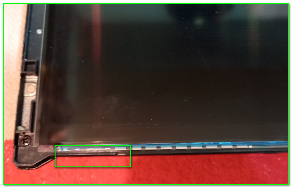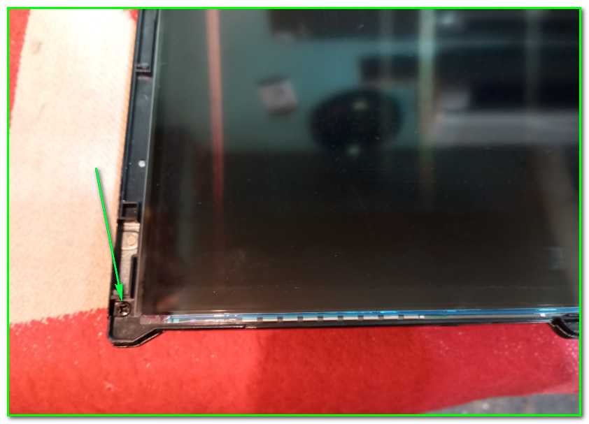 Может сложиться впечатление что матрица снимается вместе с этой рамкой, но это не так. Пара винтов с правой стороны спрятана под боковыми лепестками матрицы и до них добраться будет сложно, так что сначала нужно саму матрицу вынуть. Она здесь не приклеена, однако довольно прочно расклинена резиновыми уплотнителями.