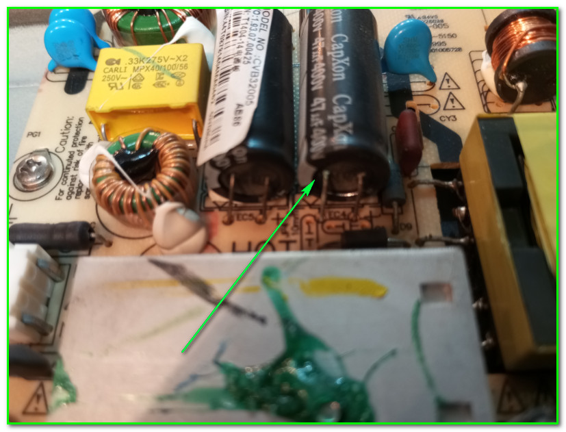 Первое что сразу бросается в глаза- это окисел на выводе сетевой банки