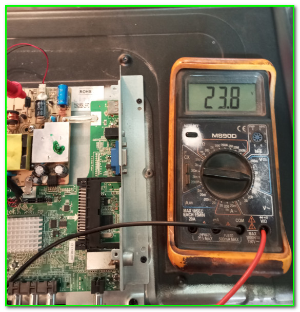 Для начала посмотрим что у нас происходит с питанием планок. А то вдруг это драйвер в мир иной отправился после таких жестких условий работы. Замеряем напряжение на выходе драйвера