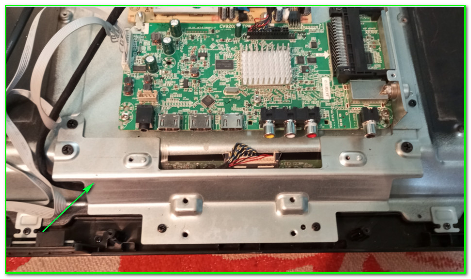 2. Когда выкрутили саморезы с передней рамки и начинаем переворачивать телек «мордой вверх», рамку надо придерживать. Она хоть и имеет несколько подстраховочных защелок, однако может соскочить.