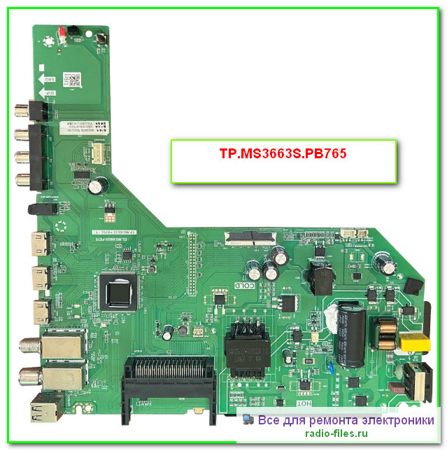 Телевизионное шасси TP.MS3663S.PB765 применяется в различных моделях LCD телевизоров бюджетного класса. Внешний вид: