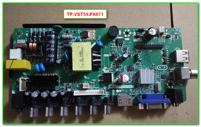 Моноплата TP.VST59.PA671 применяется а телевизорах брендов Erisson, Fusion и некоторых других. Внешний вид платы показан на рисунке ниже: