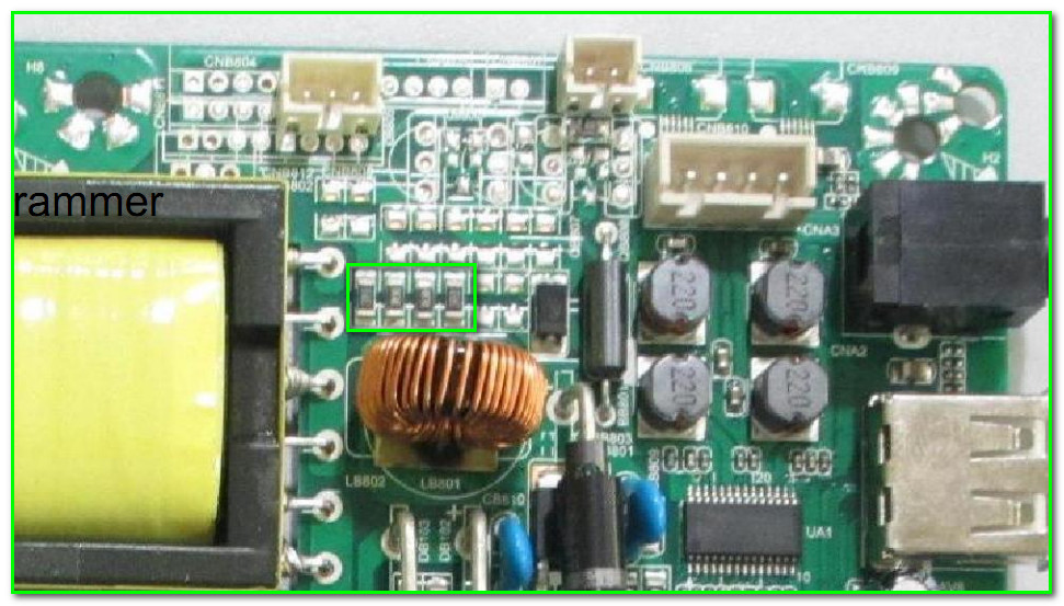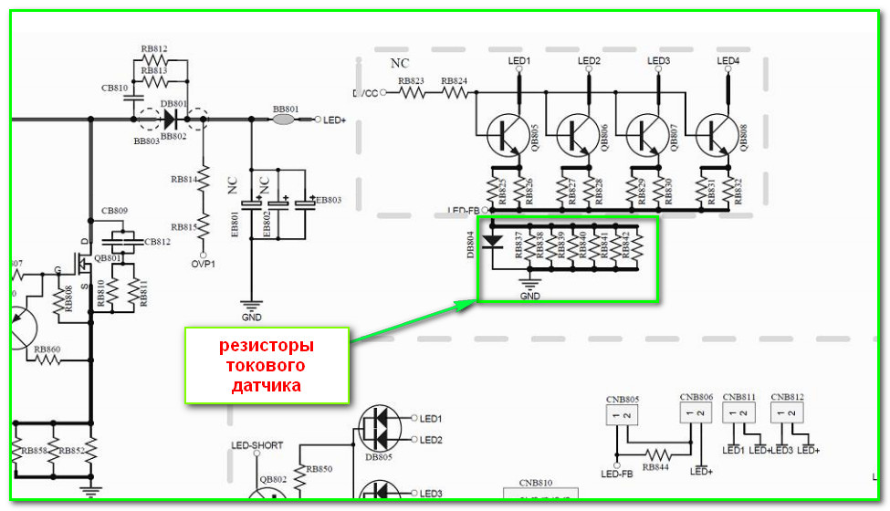 Ключевые транзисторы светодиодных линеек, обозначенные в схеме как QB805…QB808 могут отсутствовать в зависимости от применения модуля.
